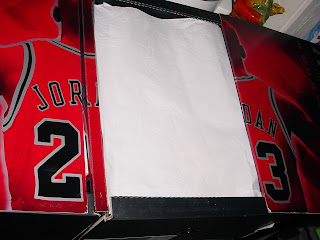 The sides glide apart, to reveal ... Two pair of reissued Air Jordan tennis shoes. Worth Kevin's allowance for the whole of his life, including his in utero period.